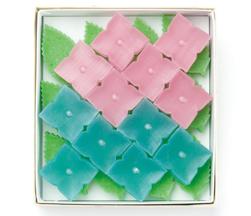 さぬき和三盆糖のみを使用した贅沢な味わいです。京都にも深く関わりのある、五つの色のとりあわせをお楽しみください。