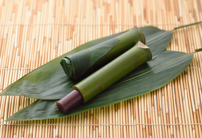 竹筒に入った水羊羹です。爽やかな若竹の風情をお楽しみください。