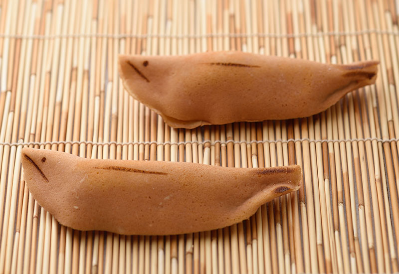 お寺などで打ち鳴らした魚盤を模した最中です。こしあんと、粒あんがございます。