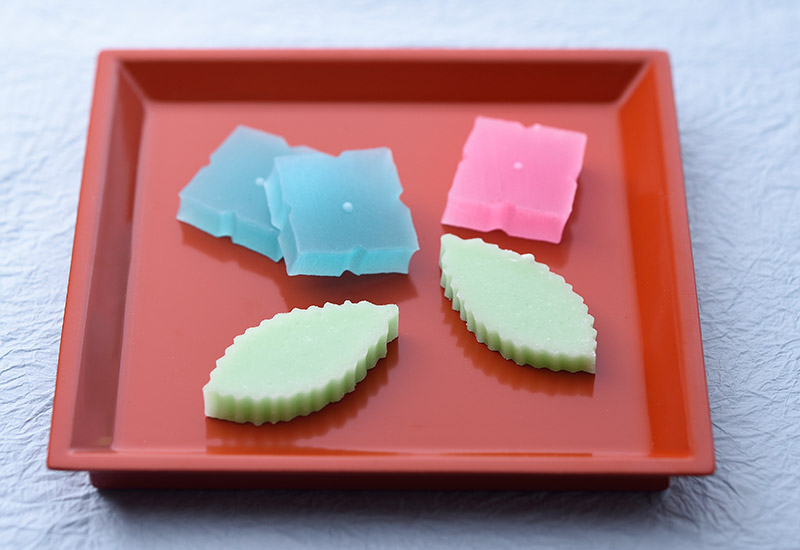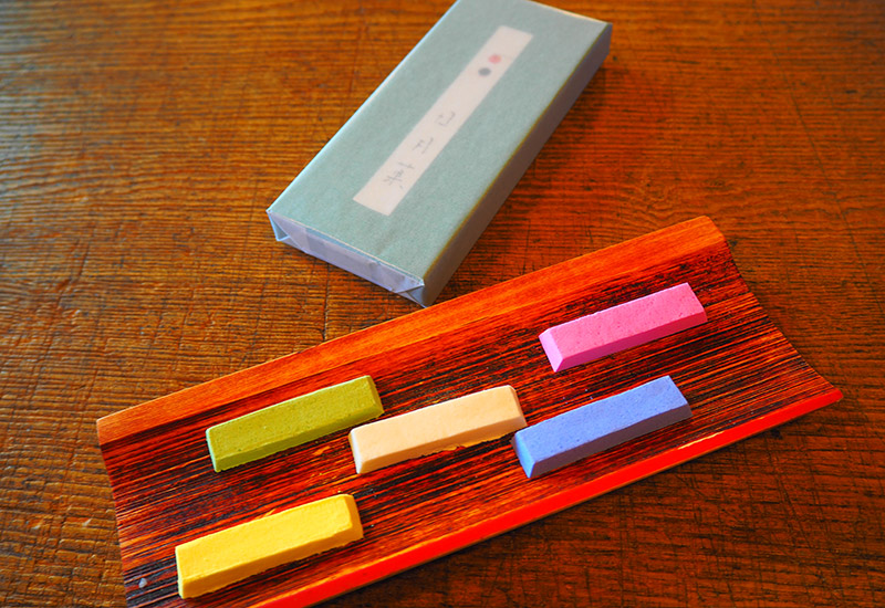 さぬき和三盆糖のみを使用した贅沢な味わいです。京都にも深く関わりのある、五つの色のとりあわせをお楽しみください。