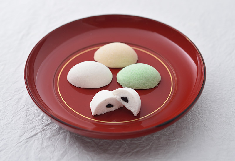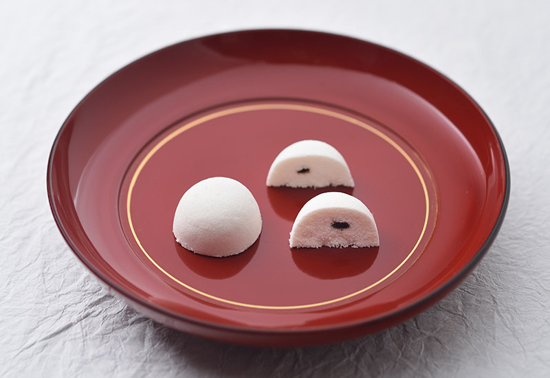御所を表す雅語として多くの詩歌に詠まれた「大内山」。平安絵巻に描かれたふくよかな笑顔を表現したお菓子です。