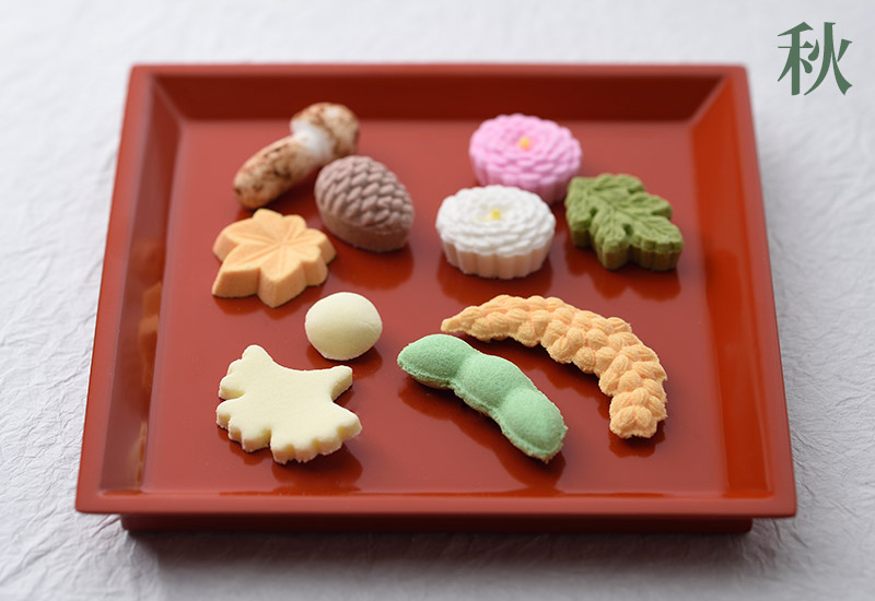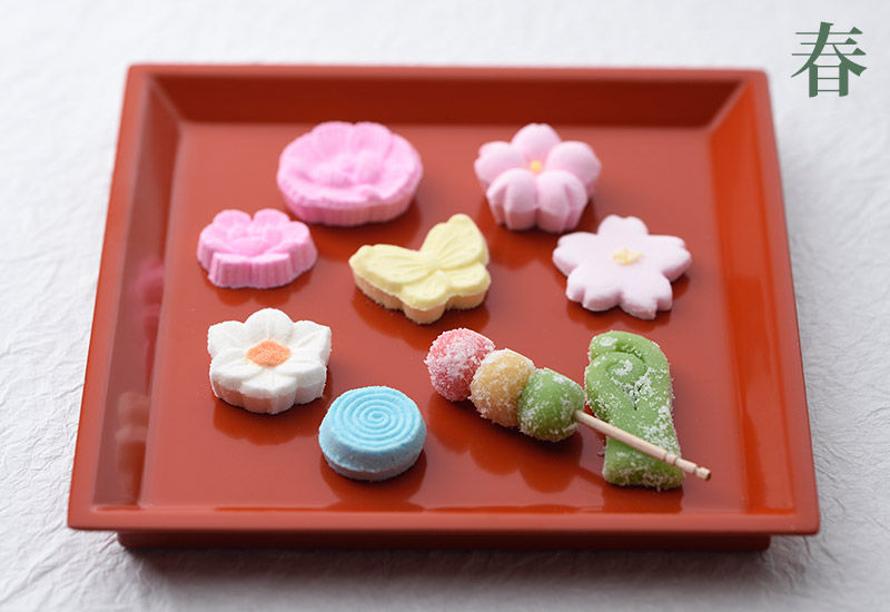 春、夏、秋、冬、京の景色はさまざまな趣をみせてくれます。ひとつひとつに心をこめたお干菓子が京の雅を伝えてくれます。