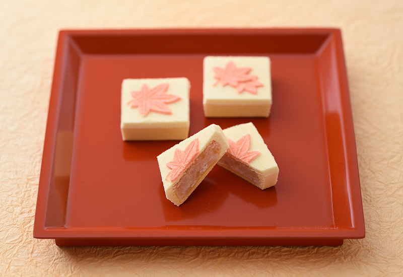 嵐山からはじまる、嵯峨野の山々を焼菓子に見立てました。卵黄をたっぷり使った餡入りです。