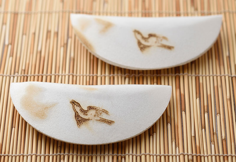 砂糖みつをひいた麩焼きせんべいです。季節の焼印を押しました。